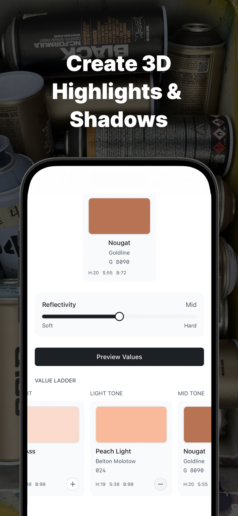- Create 3D highlights, midtones, and shadows based on surface reflectivity